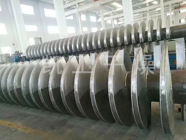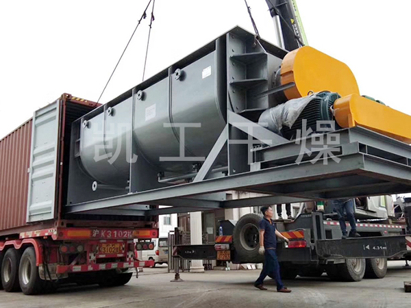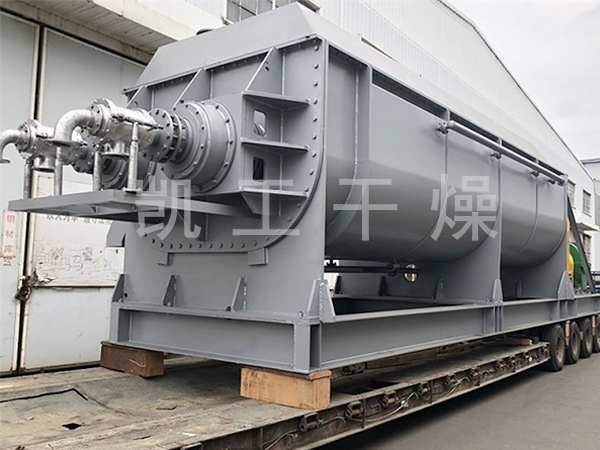 空心軸上密集排列著楔型中空漿葉,熱介質(zhì)經(jīng)空心軸流經(jīng)漿葉。單位有效容積內(nèi)傳熱面積很大,熱介質(zhì)溫度從-40℃到320℃,可以是水蒸汽,也可以是液體型:如熱水、導(dǎo)熱油等。間接傳導(dǎo)加熱,沒有攜帶空氣帶走熱量,熱量均用來加熱物料。熱量損失僅為通過器體保溫層向環(huán)境的散熱。楔型漿葉傳熱面具有自清潔功能。物料顆粒與楔型面的相對運動產(chǎn)生洗刷作用,能夠洗刷掉楔型面上附著物料,使運轉(zhuǎn)中一直保持著清潔的傳熱面。漿葉干燥機的殼體為Ω型,殼體內(nèi)一般安排二到四根空心攪拌軸。殼體有密封端蓋與上蓋,防止物料粉塵外泄而充分發(fā)揮作用。